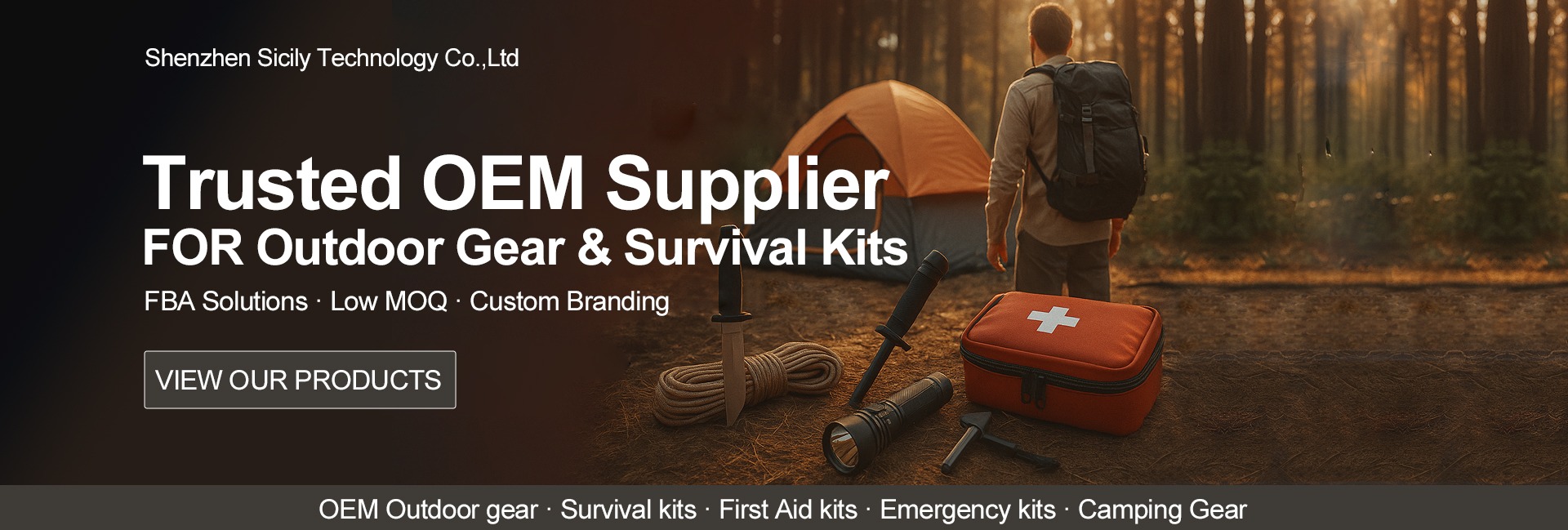 Productos principales:Equipo de exterior OEM, kits de supervivencia, botiquines de primeros auxilios, kits de emergencia, equipo de camping
