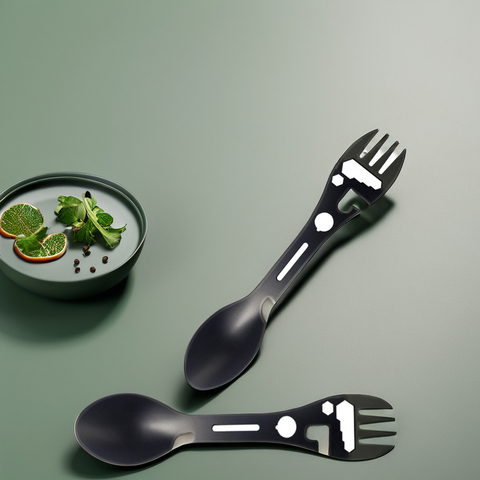 5 En 1 multifuncional de acero inoxidable para acampar al aire libre, herramienta EDC de supervivencia, cuchillo, cuchara, abrebotellas, utensilio para comer